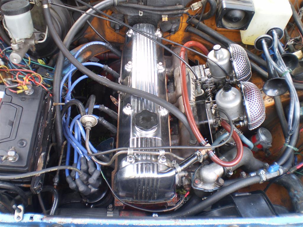 Peter has painted the Leyland coupe in a metal flake blue. The car is a six cylinder auto with twin Su's fitted. Peter has been able to fit A/C to his car. The car was once 'Home on the Range' orange with super interior (optional Luxury Pack).